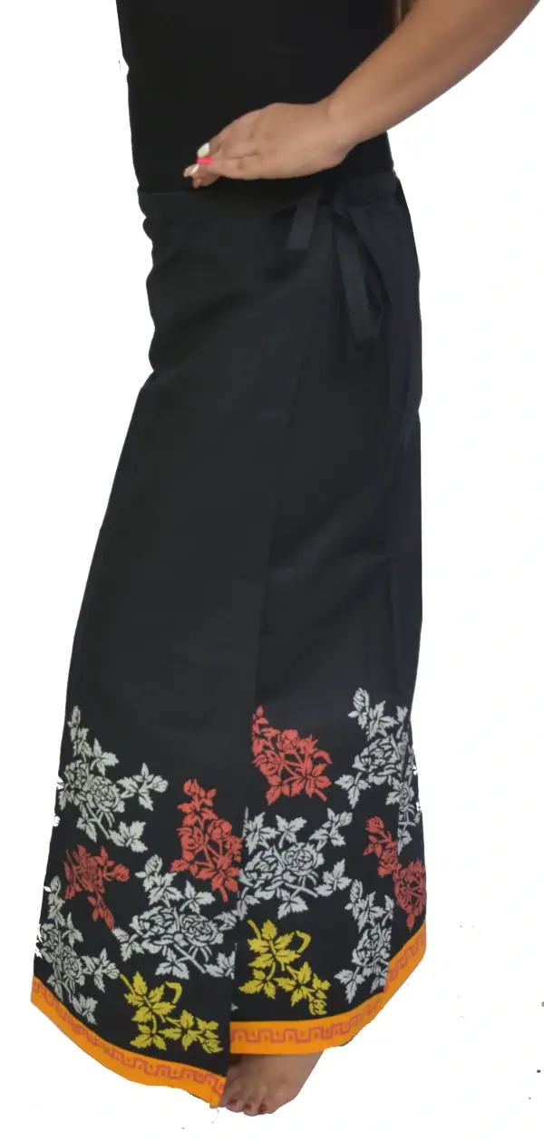 | Pure Cotton Block Printed Black Wrap Around Skirt | Pure Cotton Block Printed Black Wrap Around Skirt. Draw string for the closure. |